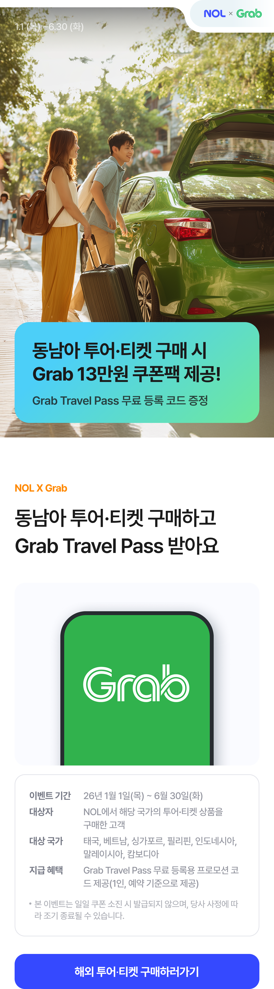 동남아 투어⋅티켓 예약시 Grab Travel Pass 증정