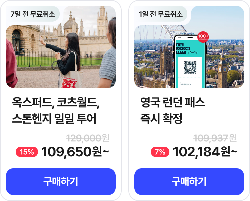 최저가로 엄선한 장거리 투어·티켓 BEST