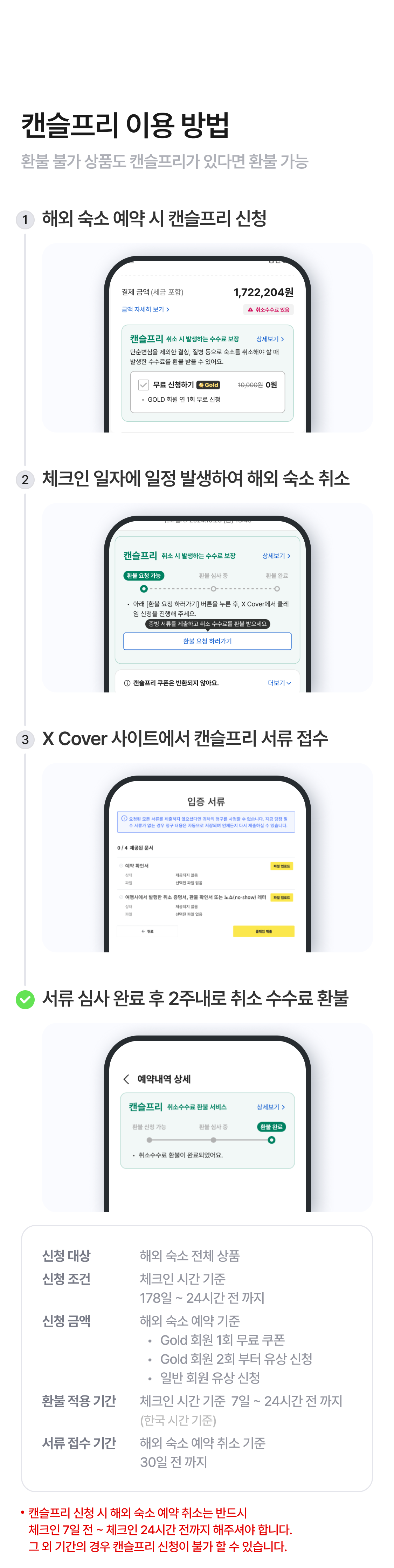 [캔슬프리 이용 및 환불 조건]