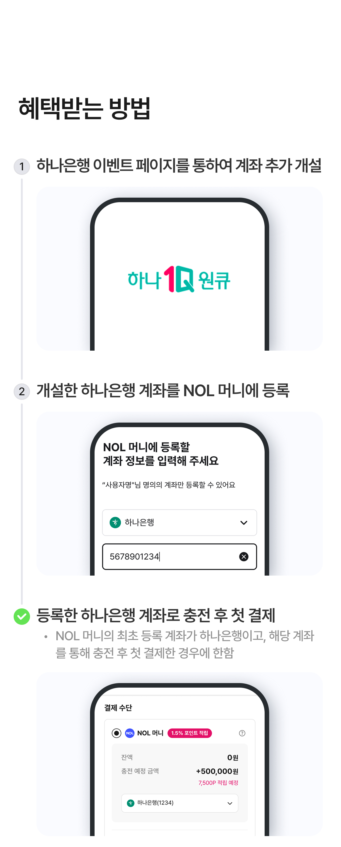 [하나은행 NOL 머니 이벤트 유의 사항 ]- 이벤트 대상 : NOL 머니 선불 충전 서비스 가입 고객 중 하나은행 계좌를 충전 계좌로 등록한 고객이에요.