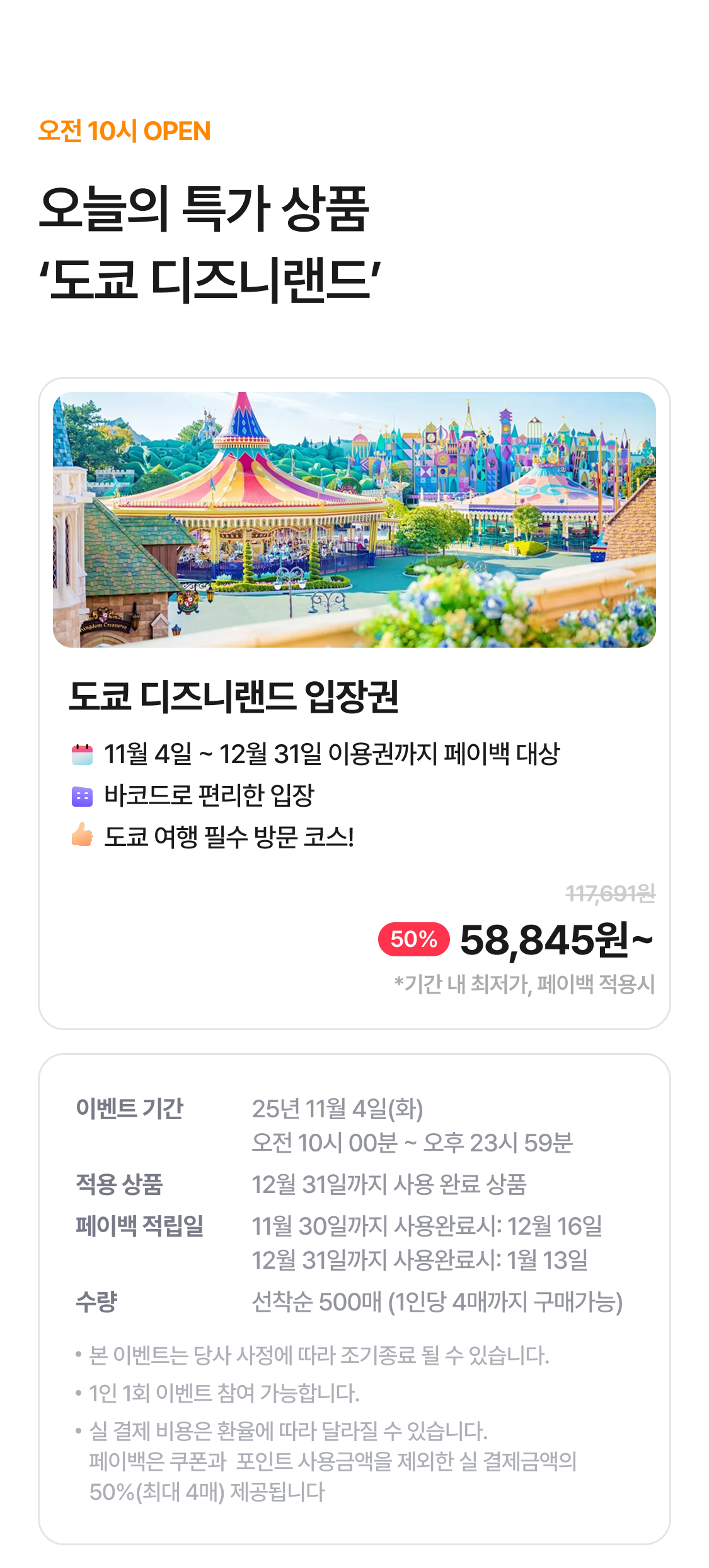 도쿄 디즈니랜드 50% 페이백 프로모션