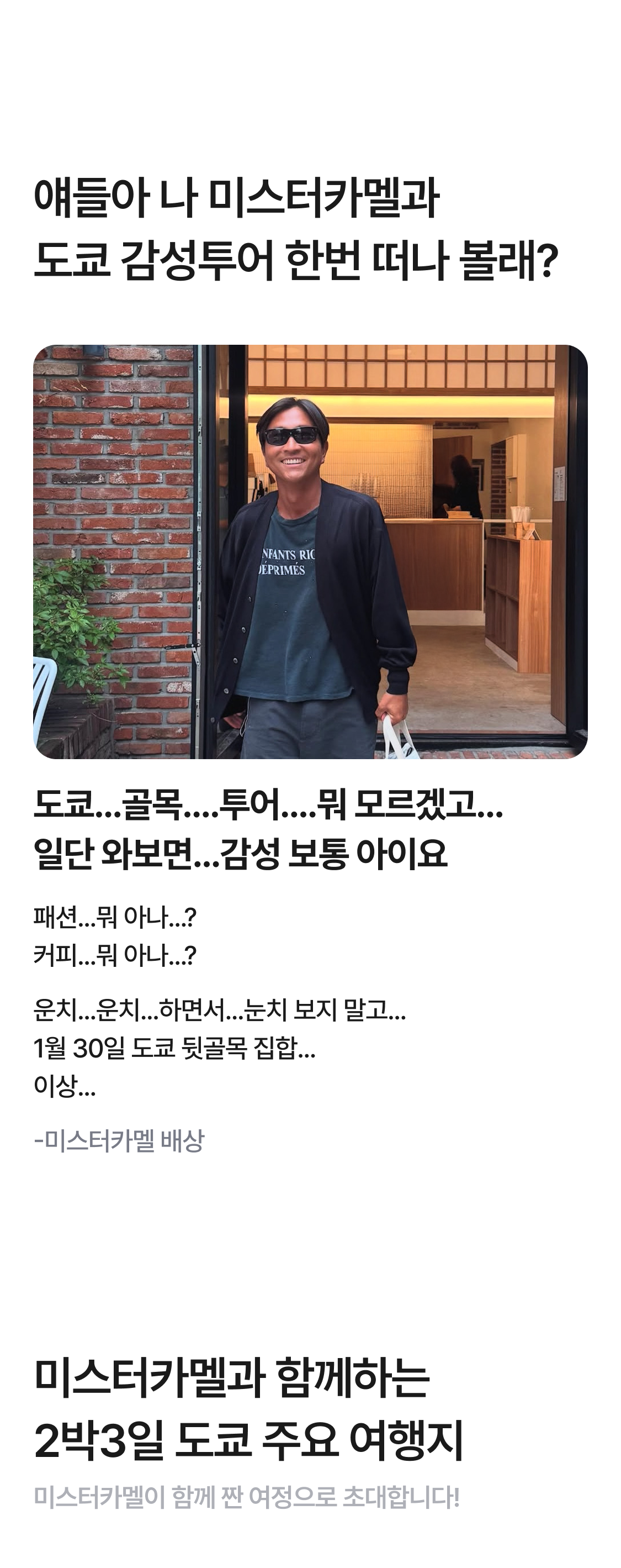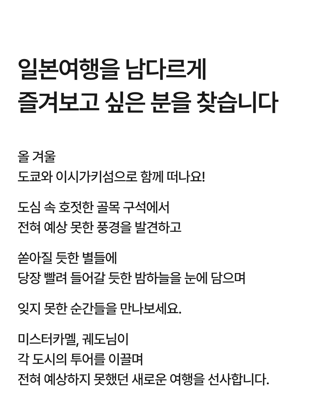 ※ ‘미스터카멜과 도쿄 감성 투어’ 일정