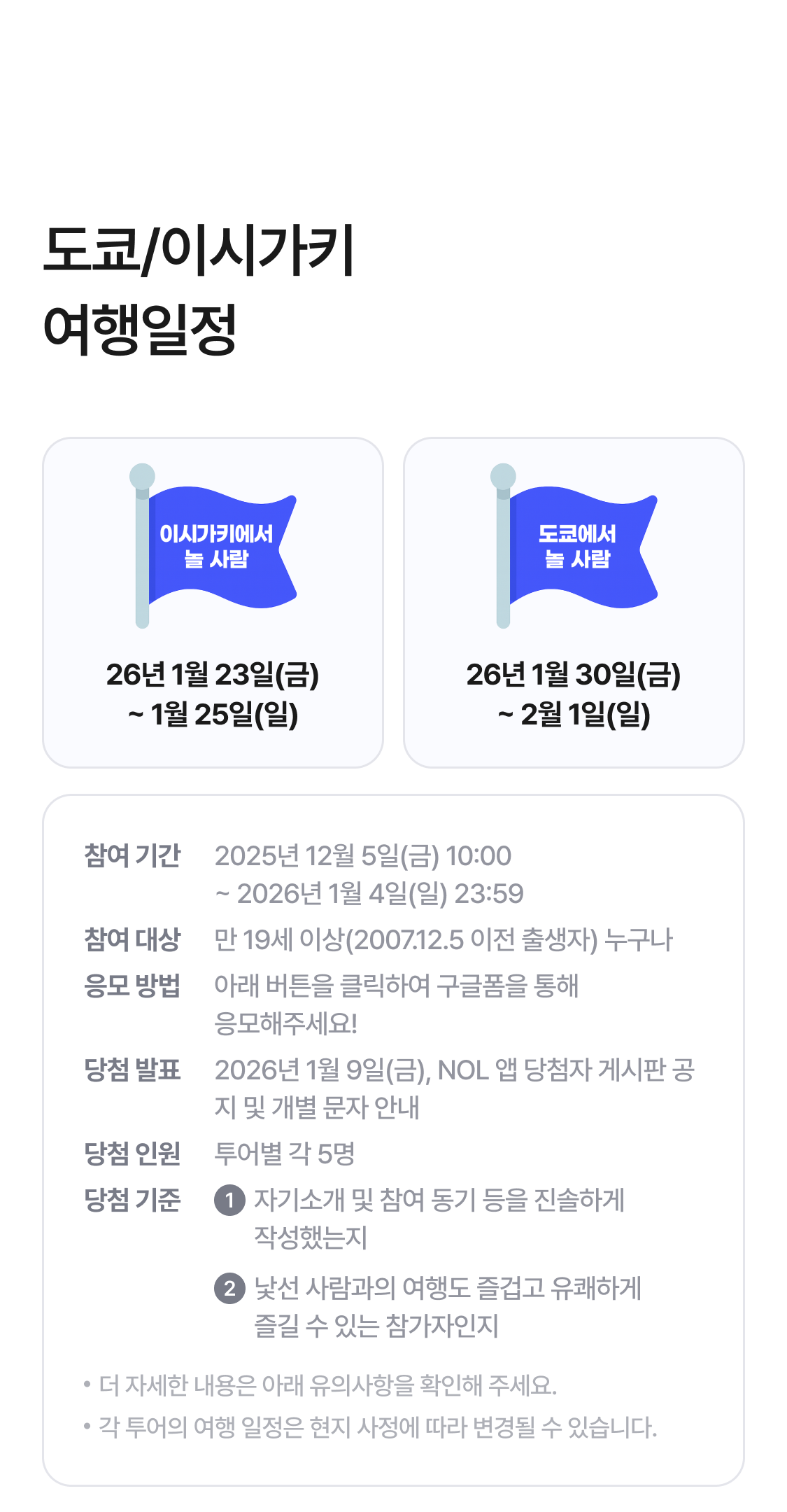 • 당첨자발표: 2026년 1월 9일(금) 18시 이내 NOL앱 내 당첨자 발표 게시판 공지 및 LMS개별안내
