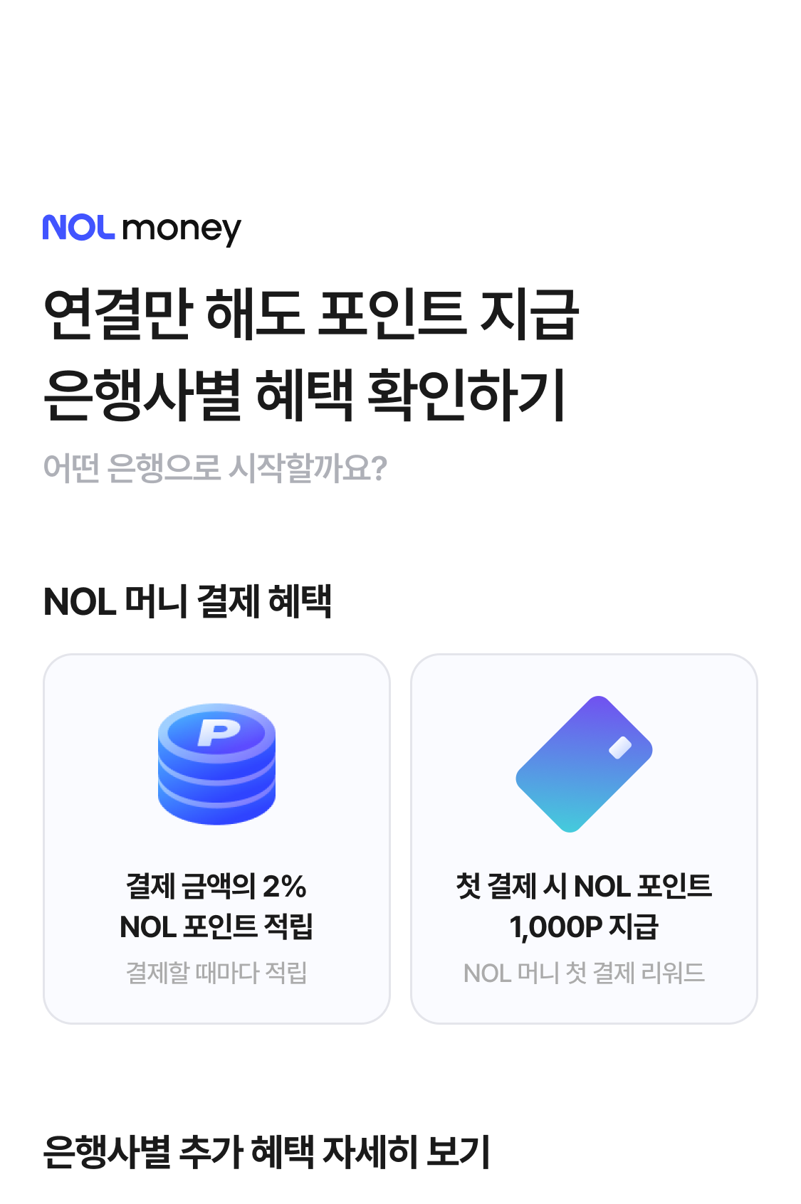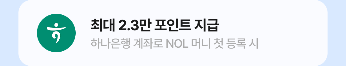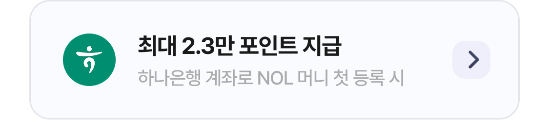 - 리워드는 계좌 등록·충전·결제·상품 가입 등 개별 조건을 은행사 및 NOL 내부 시스템에서 확인된 경우에 한해 지급돼요.