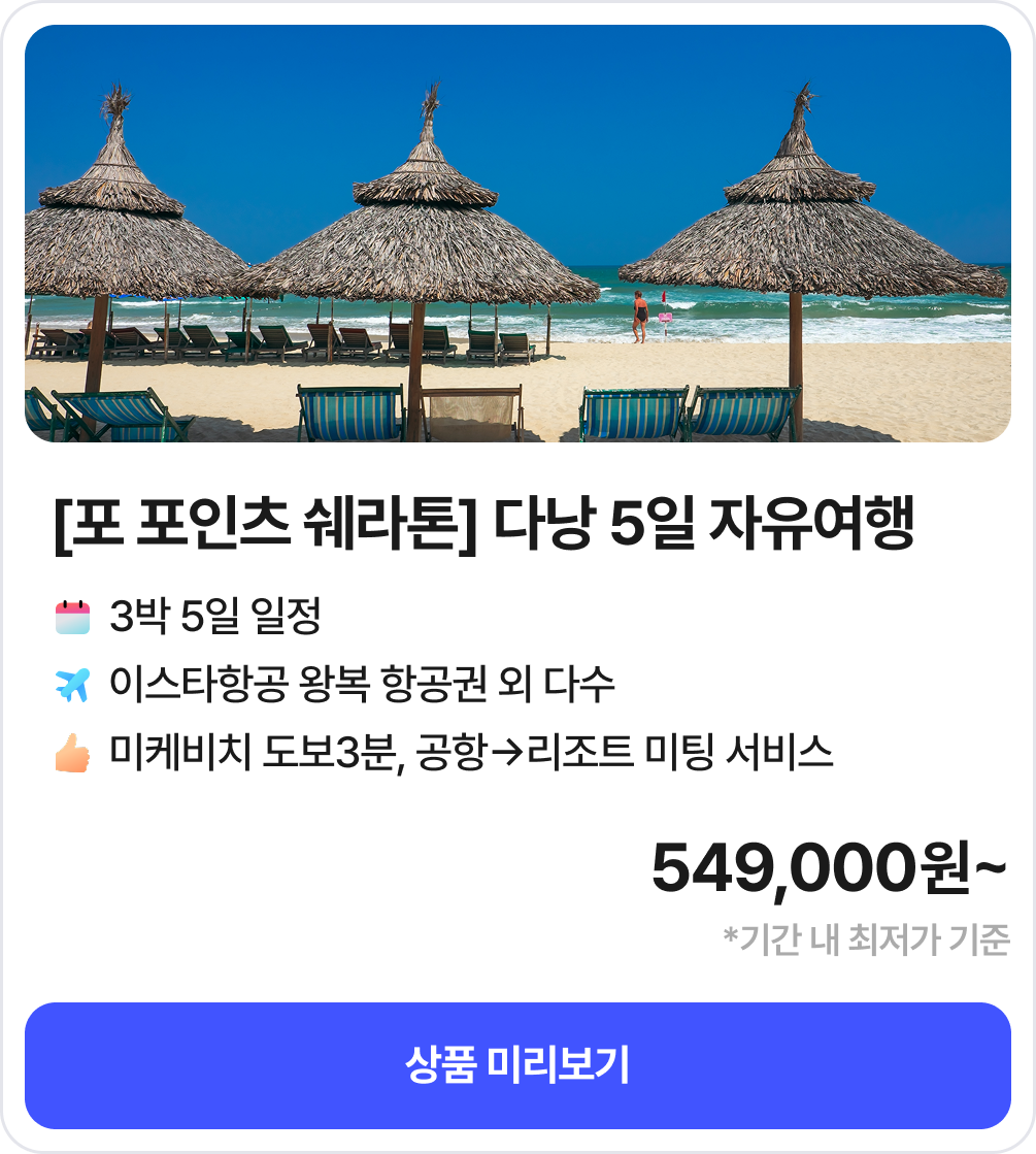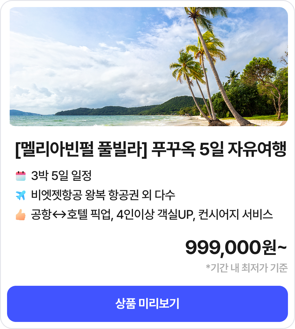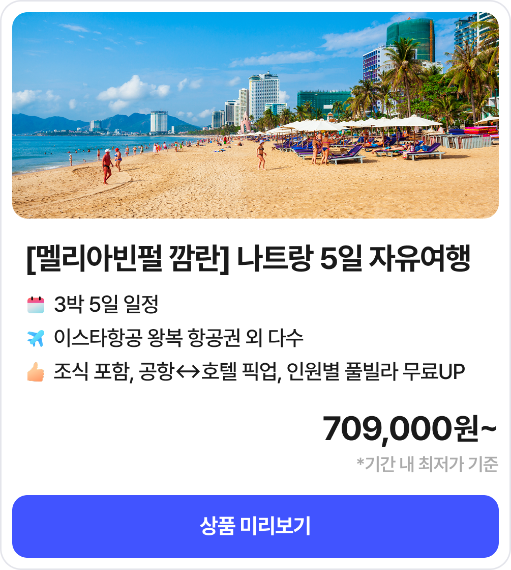5. 패키지 상품의 특성 상 최소 인원 미달로 출발 취소, 예약 후 부분 취소 등으로 이용이 불가한 경우에는 프로모션 대상에서 제외됩니다.