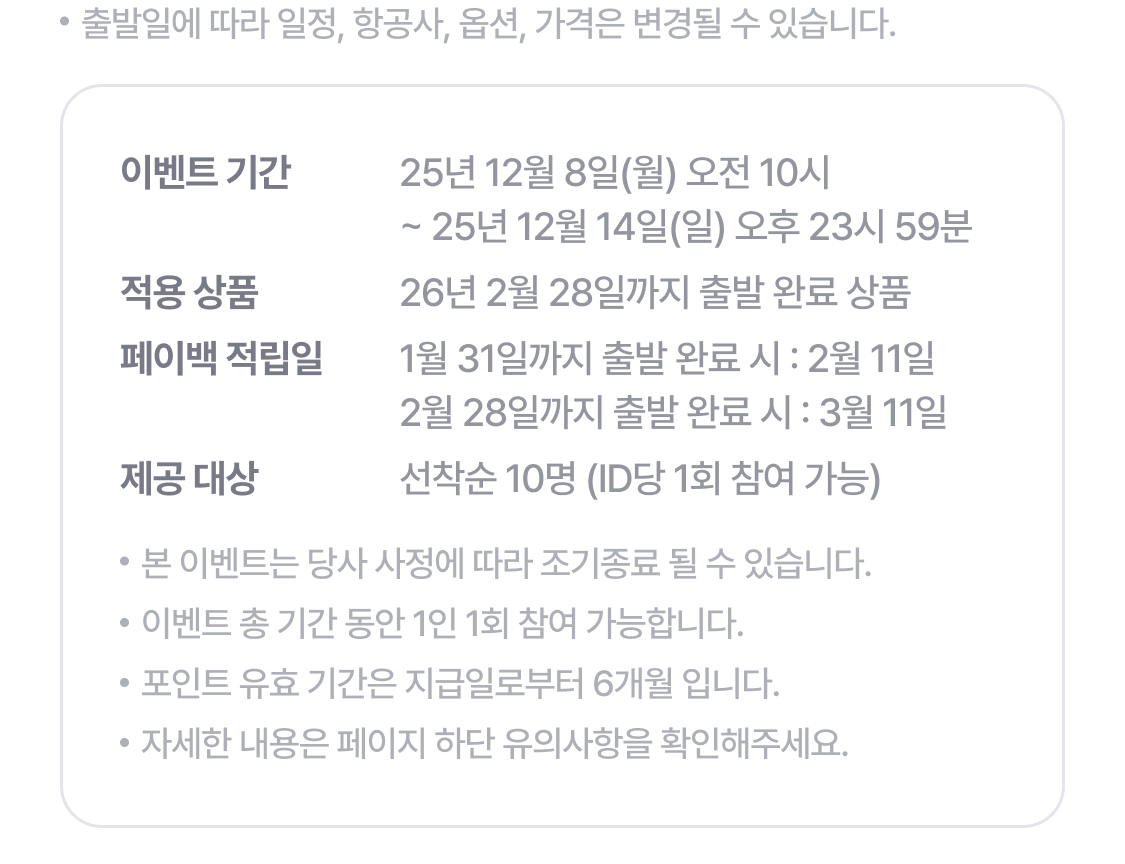 c. 구매한 해외 패키지 상품을 2026.02.28 기간 내 이용 완료한 고객 주차별 선착순으로 10명 선정하여 NOL포인트 지급 (총 5주간 총 50명 선정)