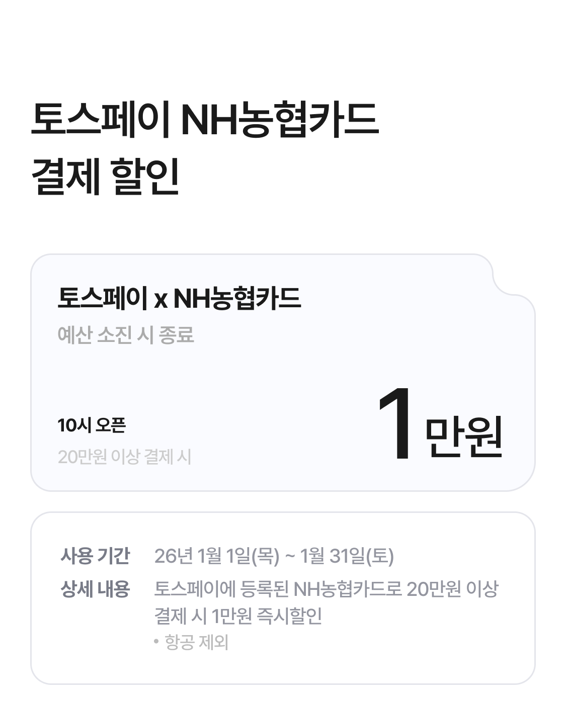 [결제제휴] 26년 1월 토스페이 x NH농협카드