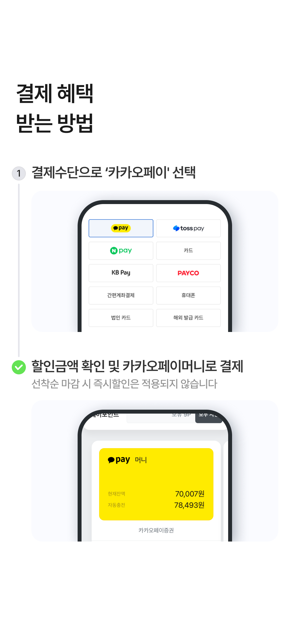 - 할인 미적용 문의 : 카카오페이 고객센터 1644-7405 / 카카오페이 고객센터 톡채널 http://pf.kakao.com/_ZXyEj