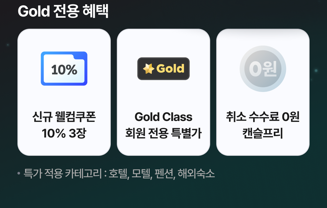 - Gold 등급 회원은 Gold Class 특가 상품을 예약 및 이용할 수 있습니다.