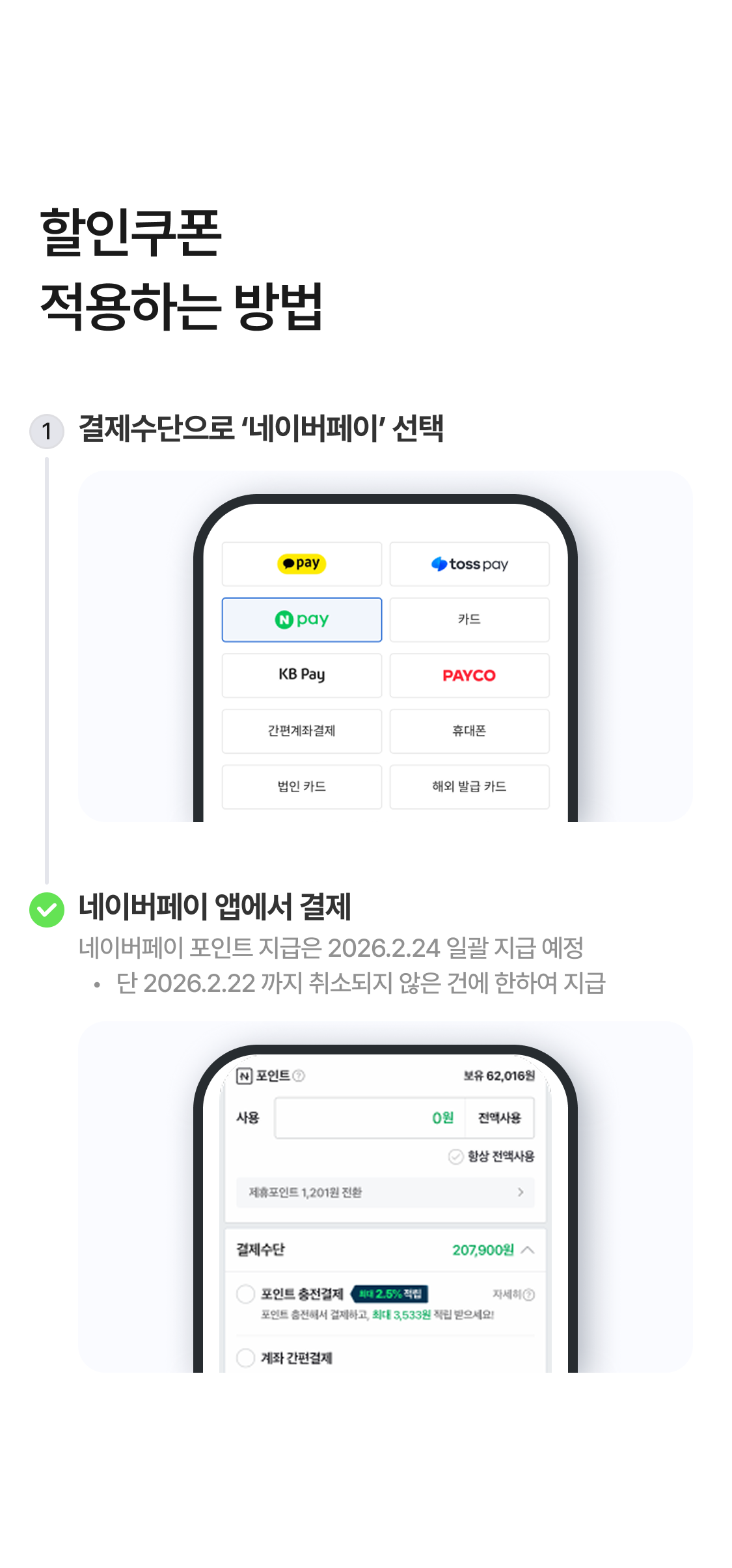 지급일 : 2026년 2월 24일 네이버 ID로 일괄 지급 예정 (2026.2.22 까지 취소되지 않은 건에 한함.)