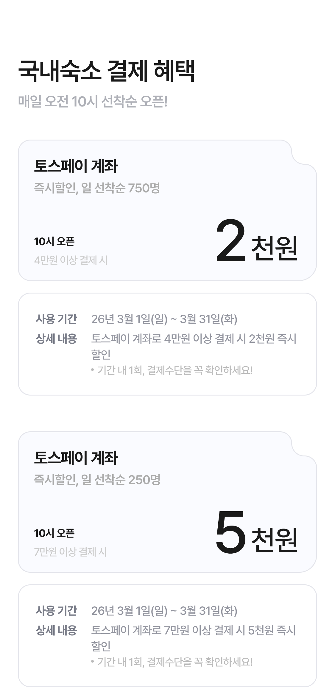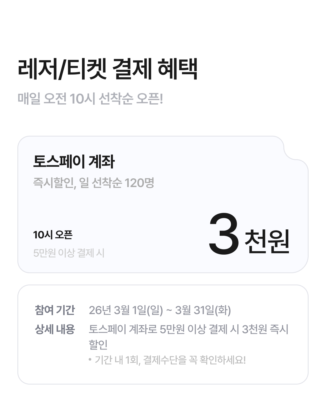 [결제제휴] 26년 3월 토스페이 결제혜택