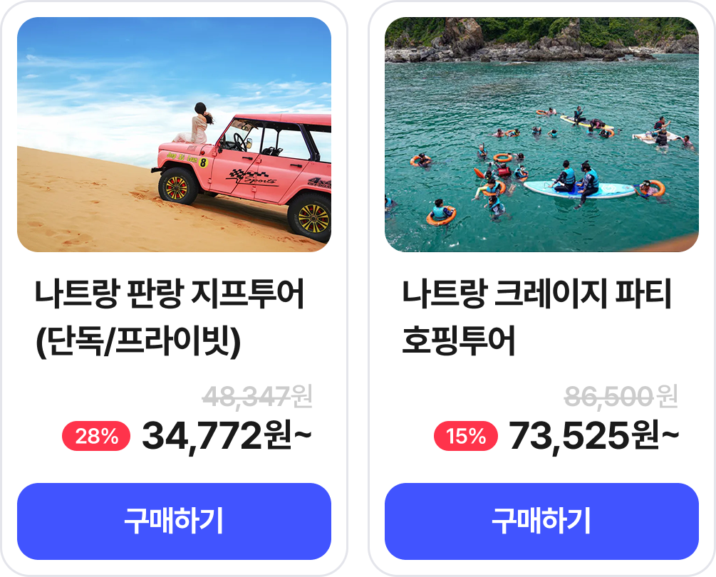 결제시 적용 ∘ 사용기간 : 발급 당일 23:59분까지 ∘ 매일 오전 10시, 선착순 500명 발급 ∘ 적용 노선 : 나트랑 |
