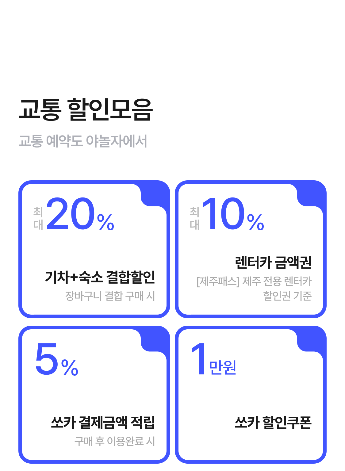 | 항공 선착순 장거리 5% 할인쿠폰 | 최대 10만원 할인 |