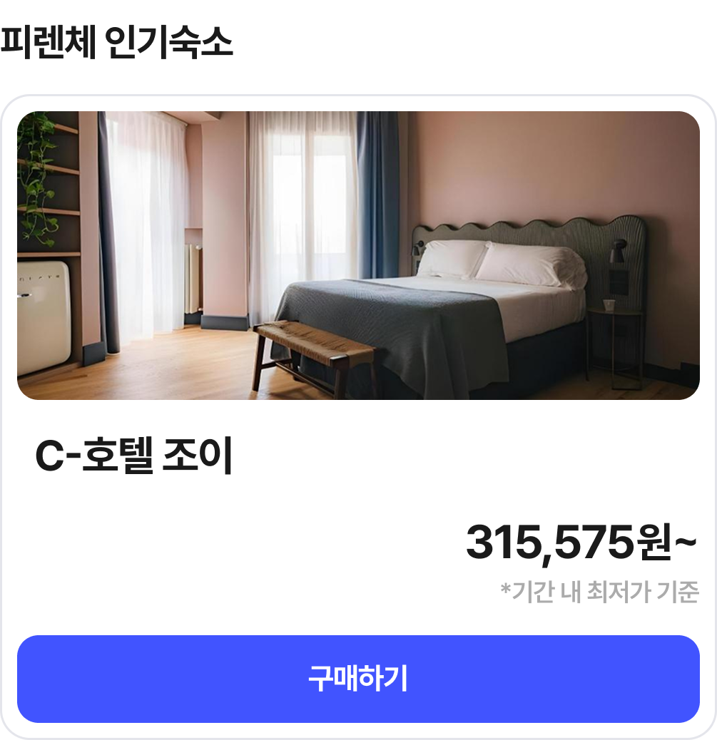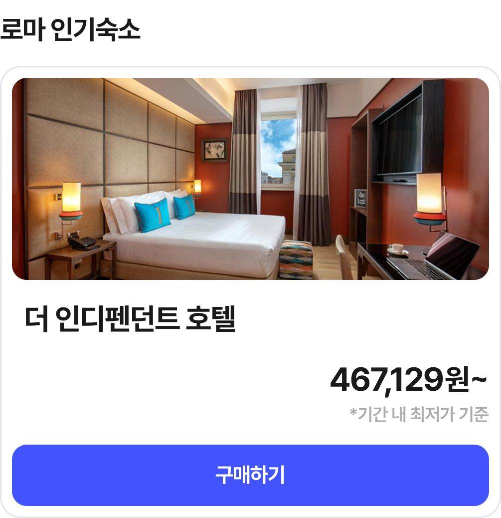 - 적용 카테고리/상품 : 해외숙박 (영국,프랑스,이탈리아,스페인,포르투갈 상품 대상)
