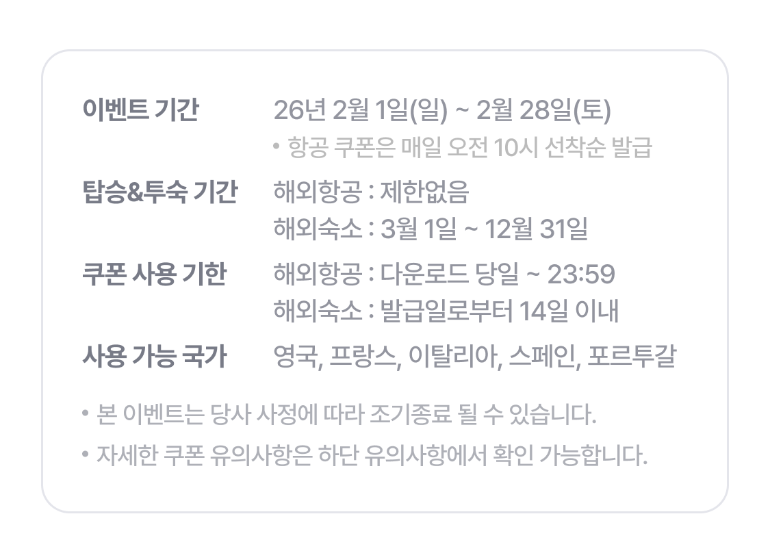 [2월 이달의 국가 서유럽 쿠폰 유의사항]