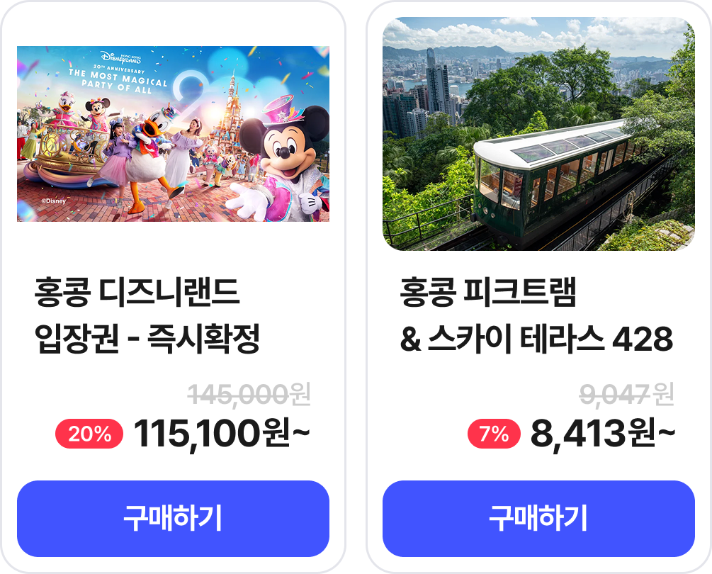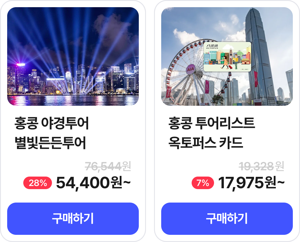 | [반차쓰기 좋은 여행] 홍콩/칭다오 선착순 2만원 쿠폰 | 2만원 정액 할인 | ∘ 상품 판매가