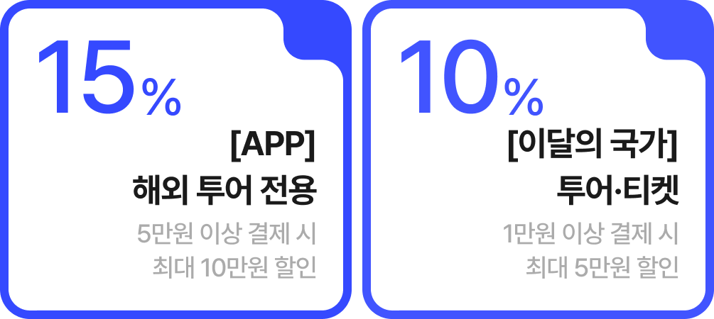 | [4월 APP전용] 해외 투어 전용 15% 할인 | 최대 3만원 할인 |
