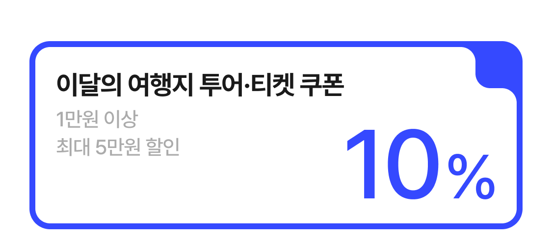 | 항공 선착순 장거리 5% 할인쿠폰 | 최대 8만원 할인 |