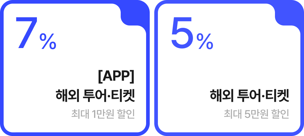 | [4월 APP전용] 해외 투어 티켓 7% 할인 | 최대 1만원 할인 |