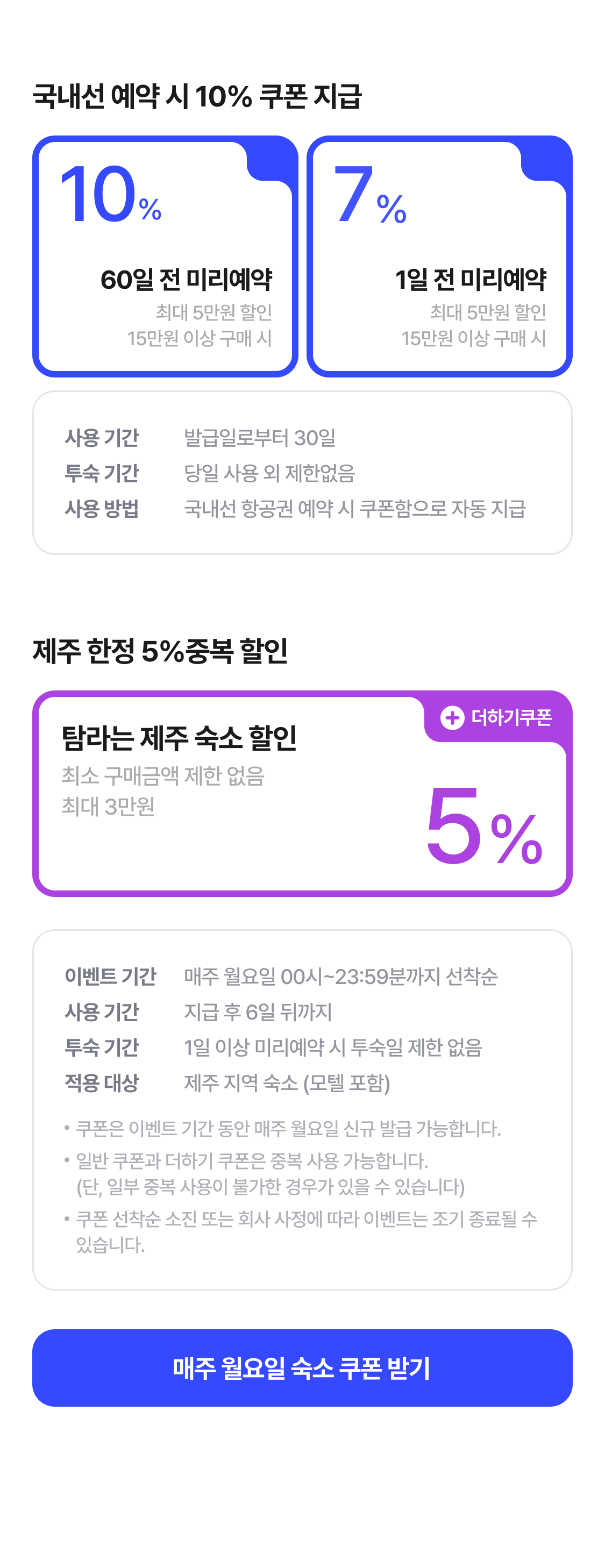 | 쿠폰명 | 혜택 | 쿠폰 사용 조건 |