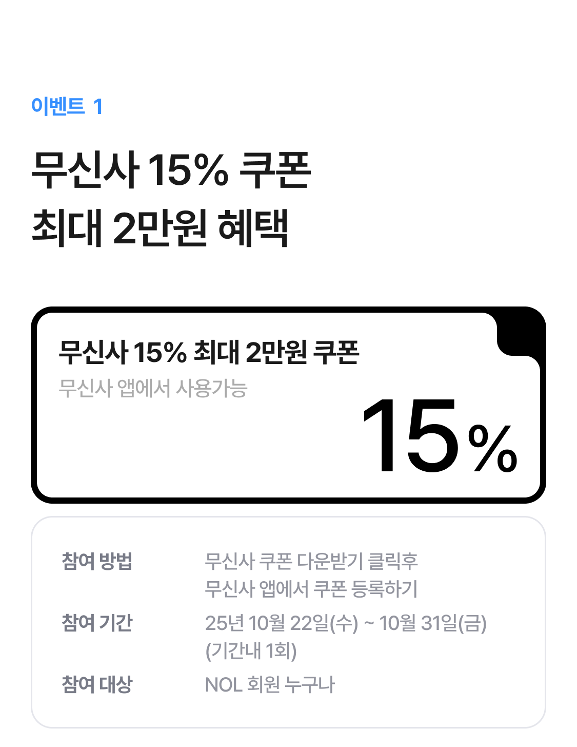 쿠폰명 : [무신사xNOL] 15% 쿠폰