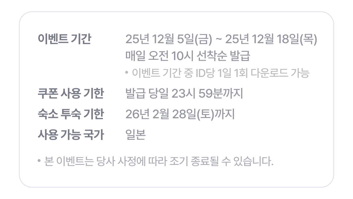 [일본 숙소 선착순 할인쿠폰 유의사항]