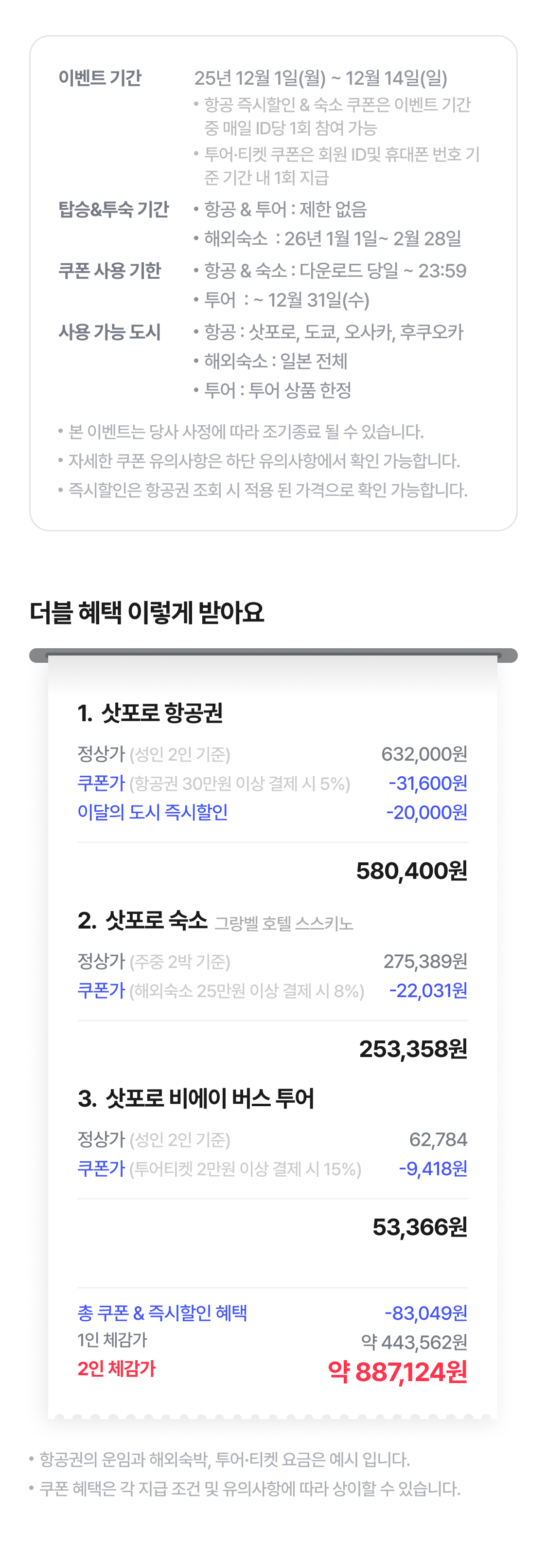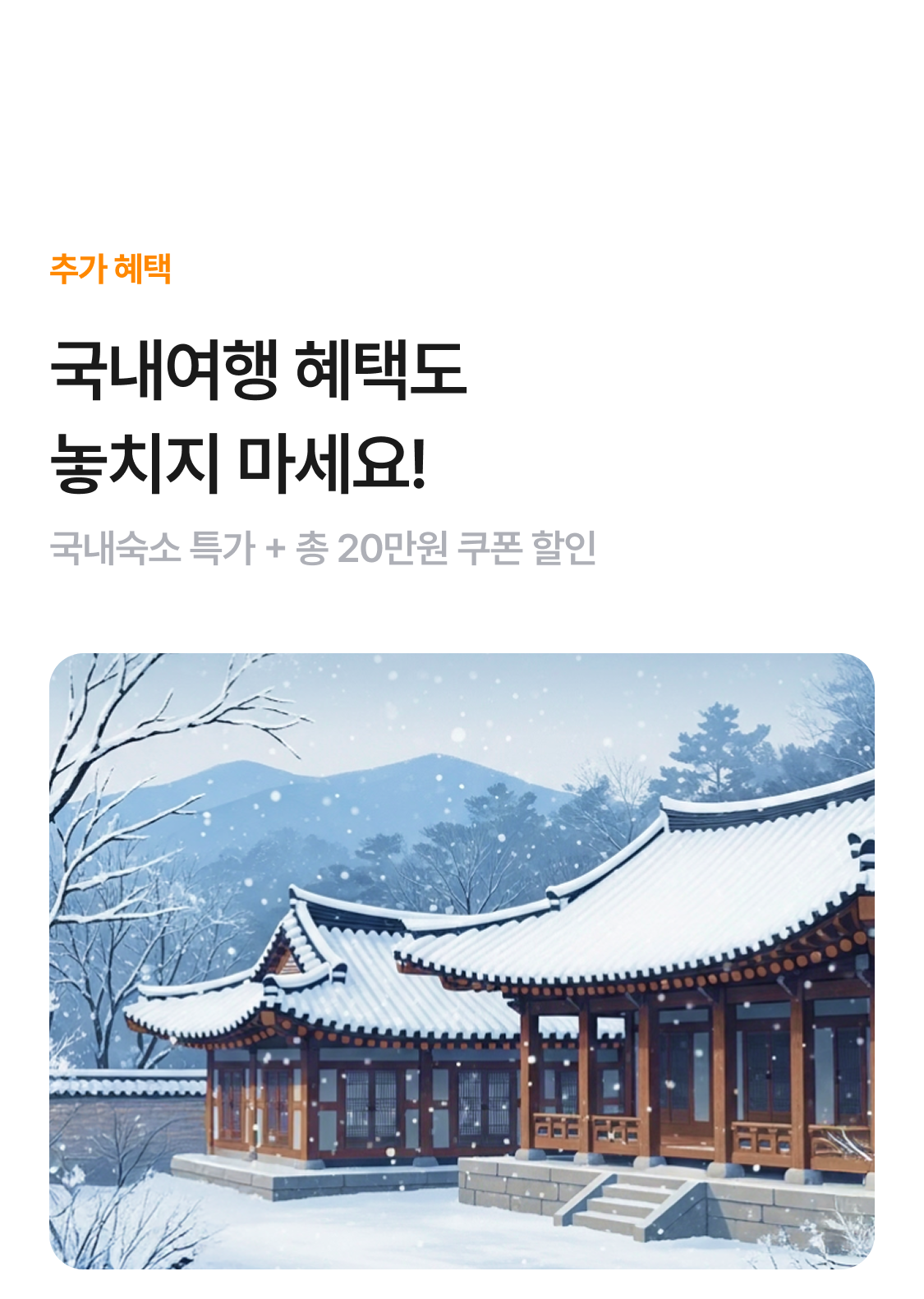 | 겨울여행 인기지역 선착순 5% 쿠폰 | 최대 30만원 할인 |