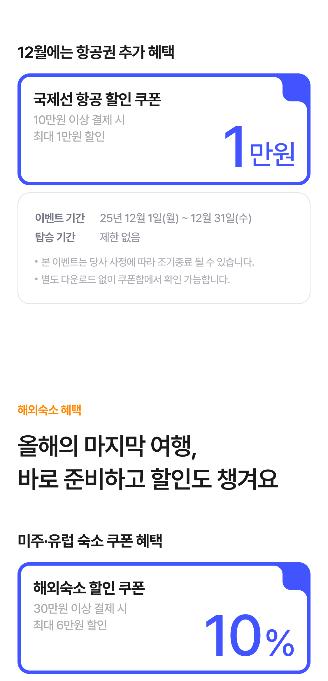 | 12월 한정 국제선 1만원 할인쿠폰 | 1만원 할인 |