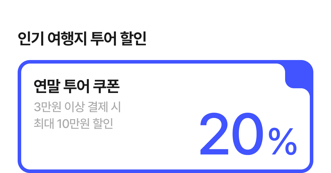 | [12월한정]해외 인기 투어 20% 할인쿠폰 | 최대 10만원 할인 |