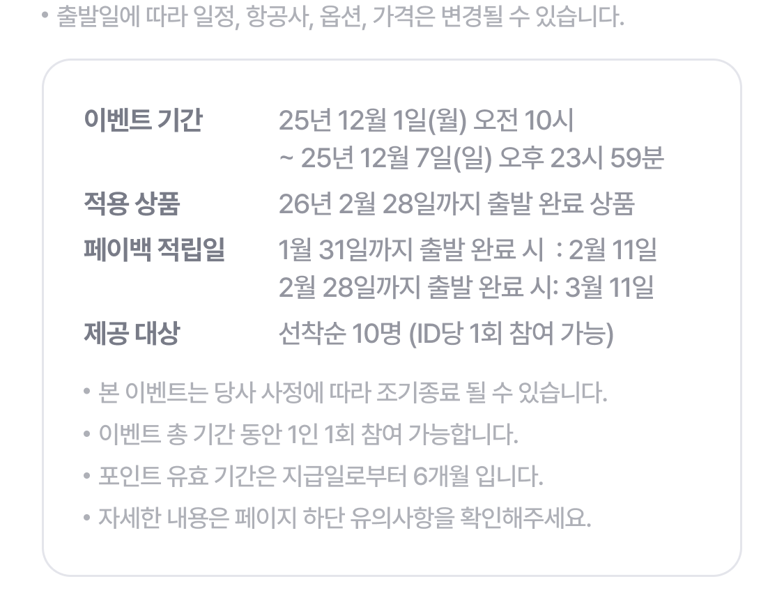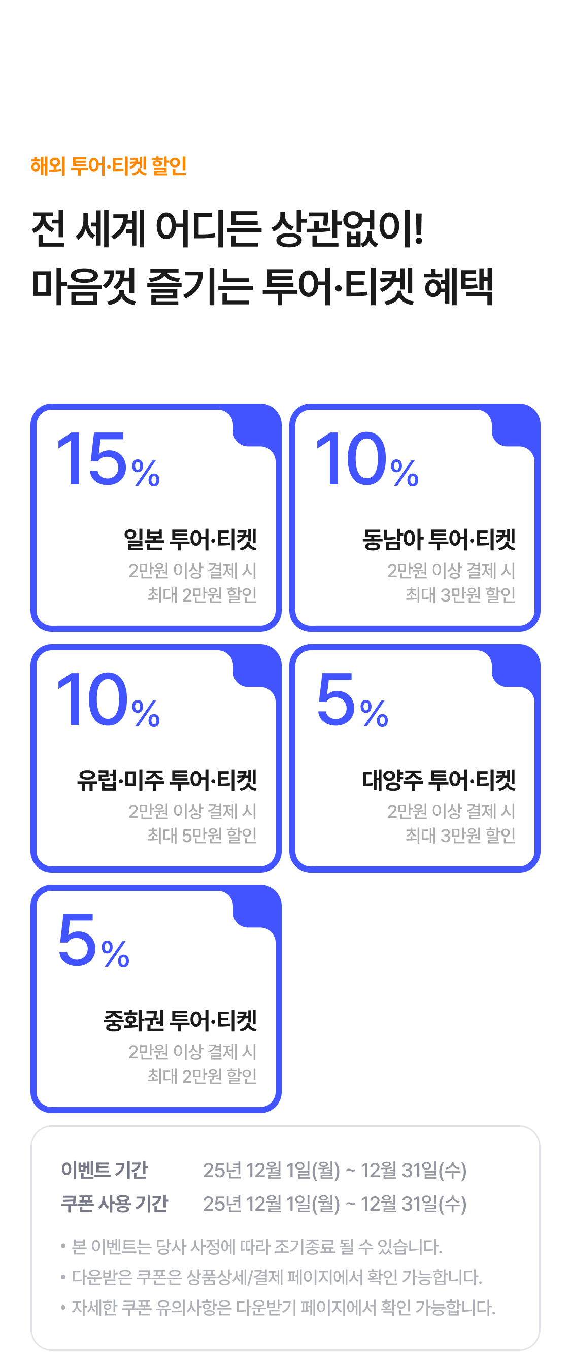 | [12월의쿠폰] 미주 투어·티켓 10% 할인 | 미주 지역 상품 10% 할인 |