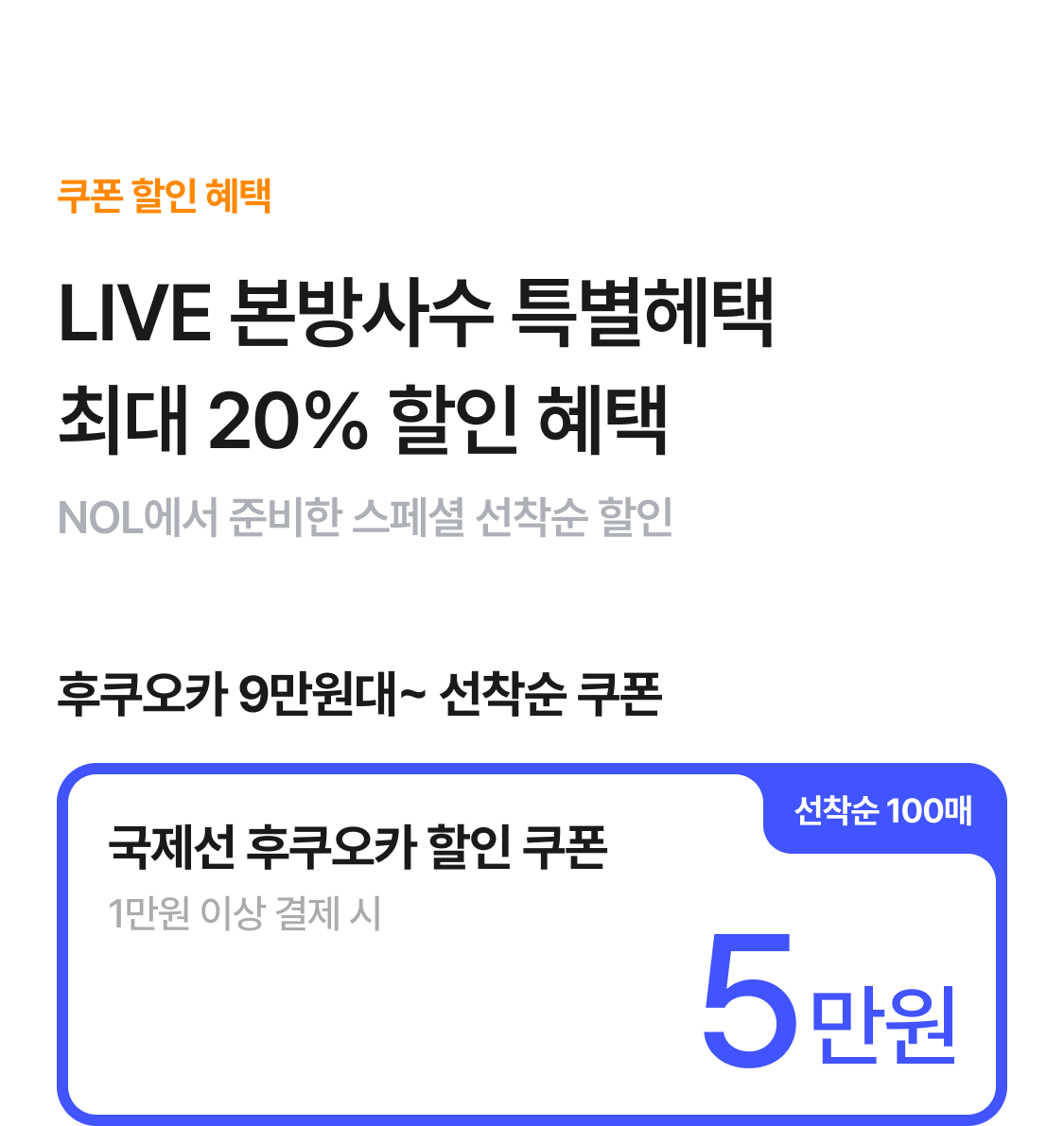 | [NOL라이브] 해외숙소 10% 할인쿠폰 | 10% 할인(최대 50,000원) | ∘ ~ 2026.2.28 기간 내 투숙 상품 구매시∘ 상품 판매가