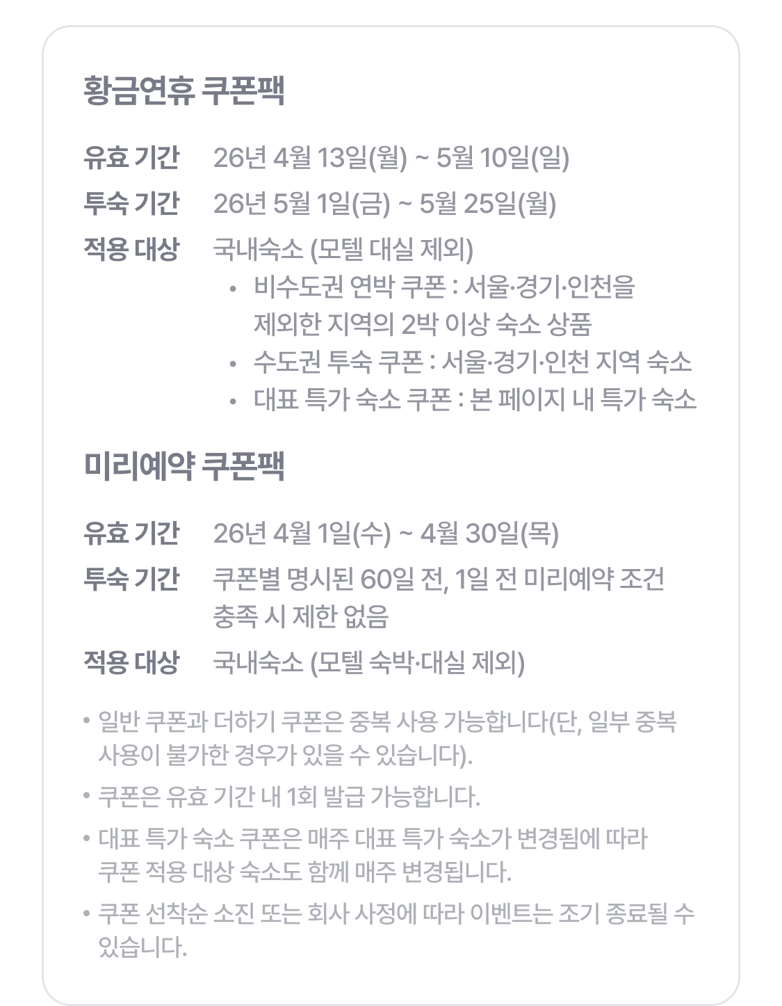| 비수도권 연박 쿠폰 7% | 7% (최대 5만원) |