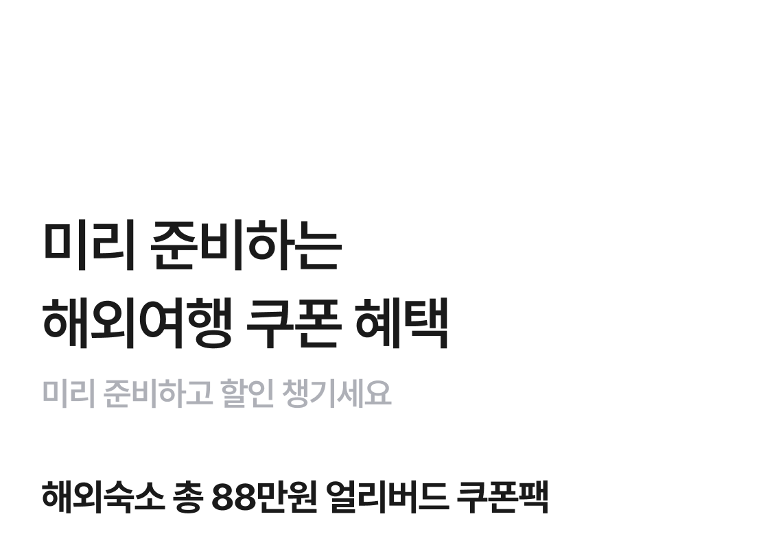 | 해외숙소 10% 할인쿠폰 | 10% 할인(최대 350,000원) |