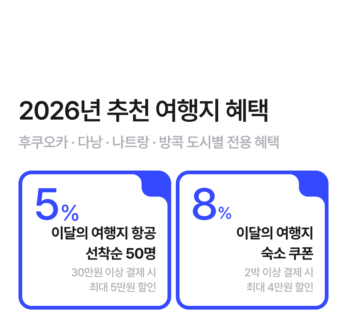 | 항공 선착순 장거리 5% 할인쿠폰 | 최대 8만원 할인 |