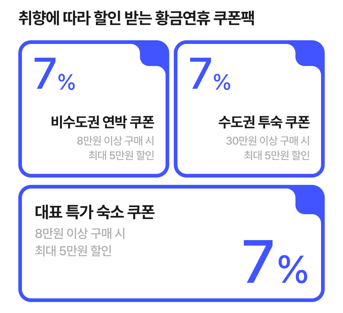 | 대표 특가 숙소 7% | 7% (최대 5만원) |