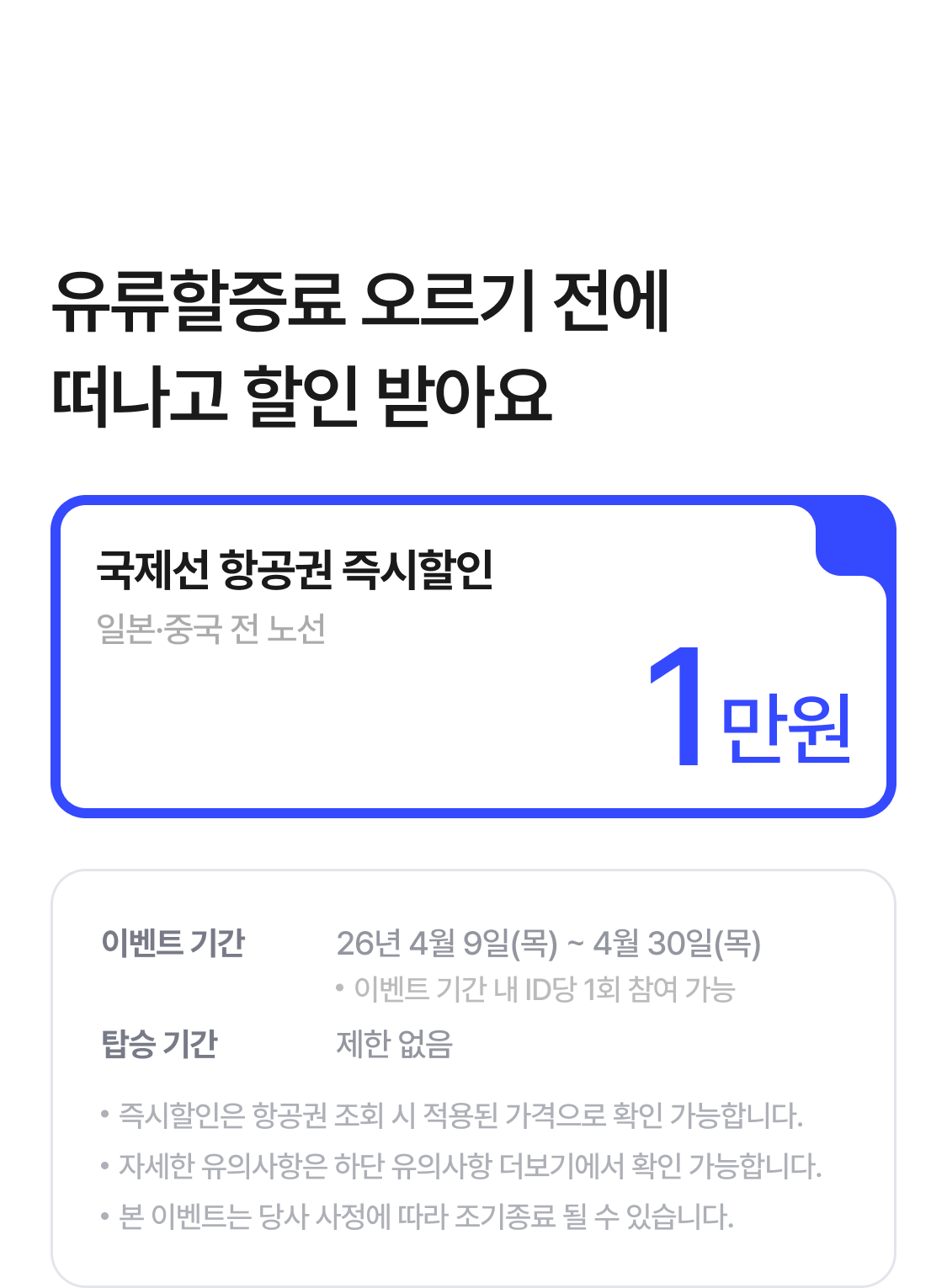 | 항공 선착순 5만원 할인쿠폰 | 5만원 할인 |