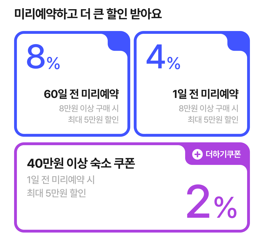 | 60일 전 미리예약 8% | 8% (최대 5만원) |