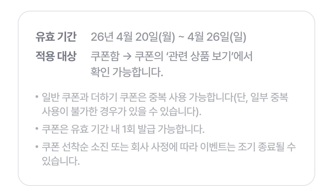 | 쿠폰명 | 혜택 | 쿠폰 사용 조건 |