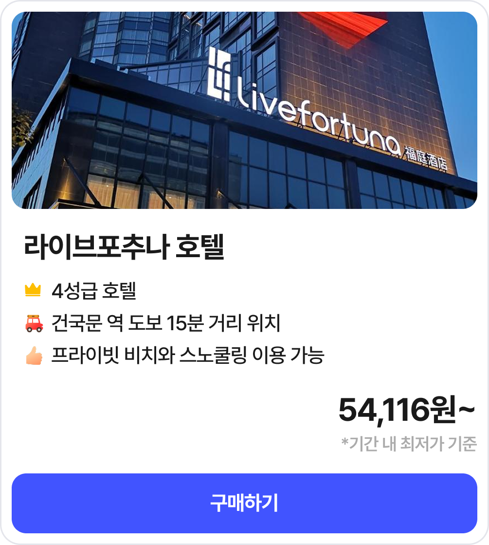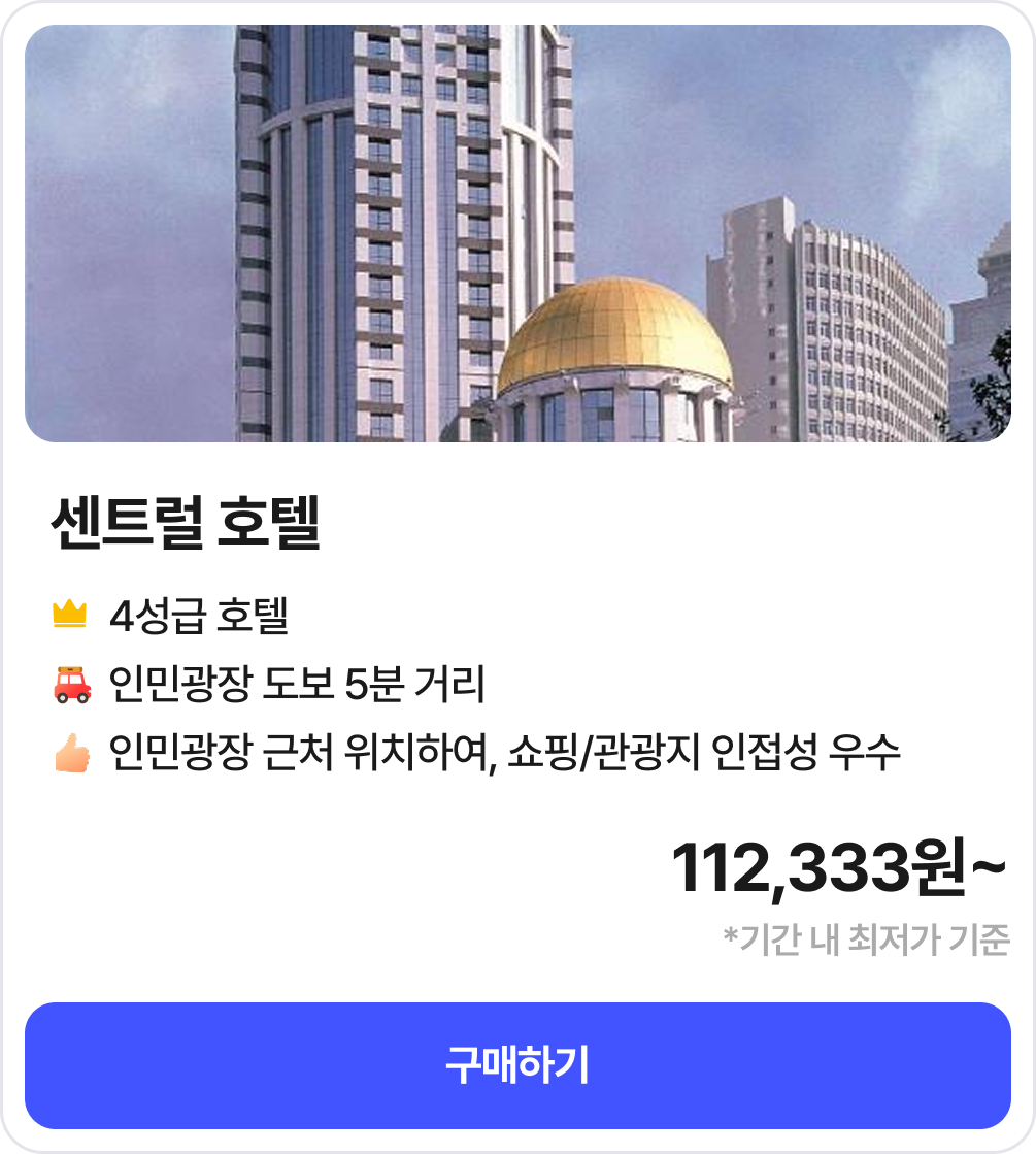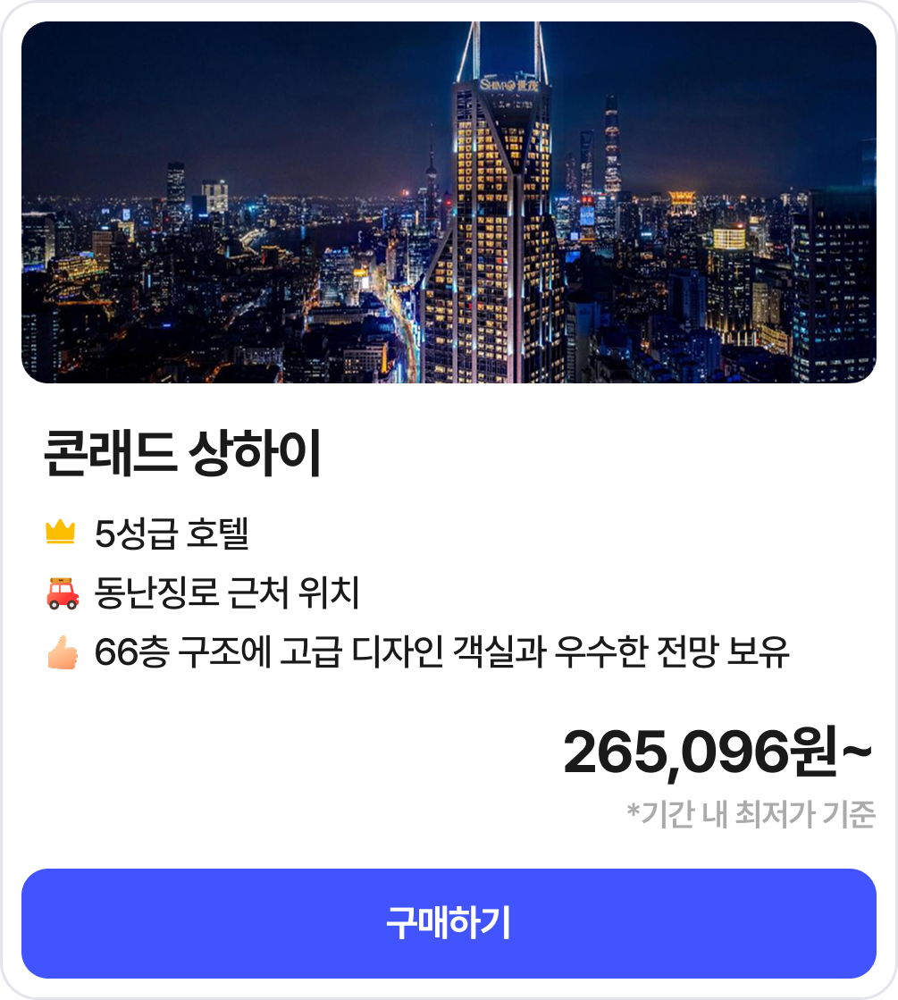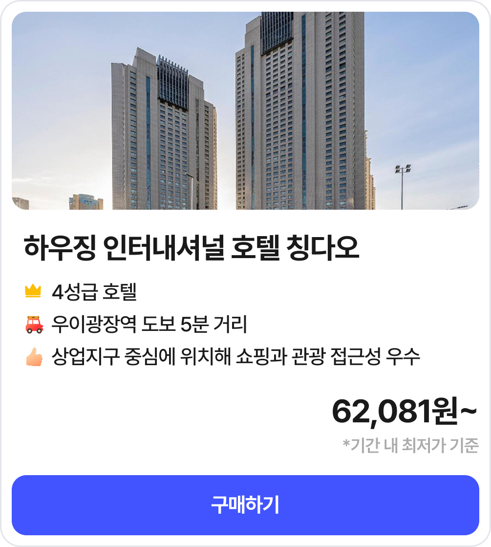 ∘ 투숙기한 제한없음∘ 상품 판매가 30만원 이상 결제시 적용∘ 중국 전 지역 숙소