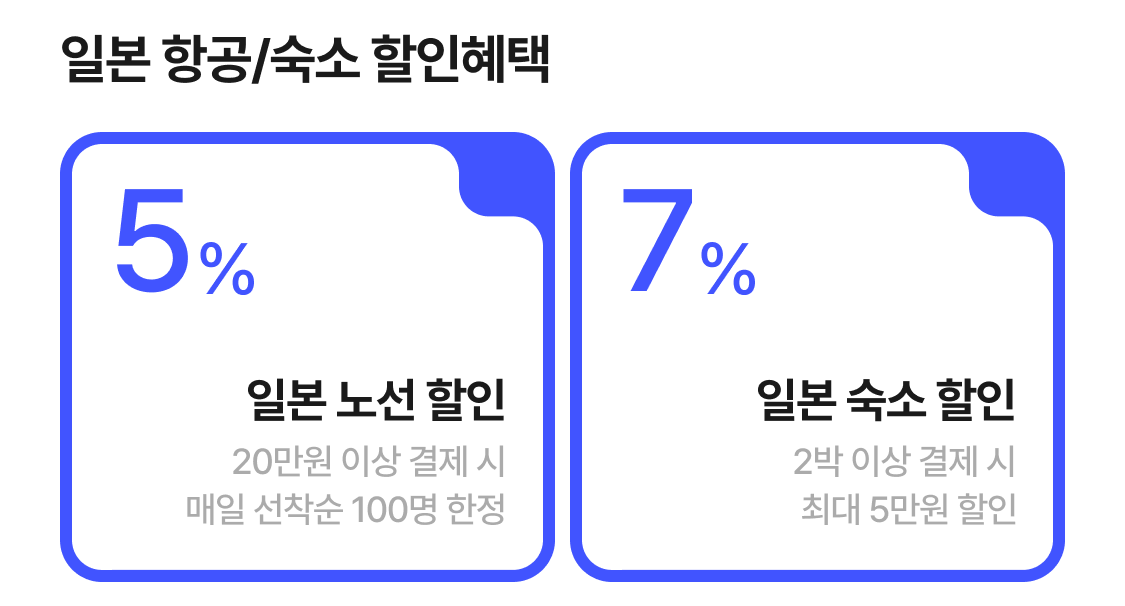 | [이달의 국가] 일본 국제선 5% 선착순 할인쿠폰 | 5% 할인(최대 5만원 할인) | ∘ 탑승기한 제한없음∘ 상품 판매가