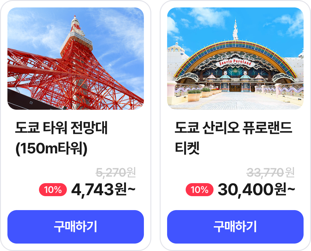 - 적용 카테고리/상품 : 도쿄, 오사카, 후쿠오카, 삿포로 투어·티켓