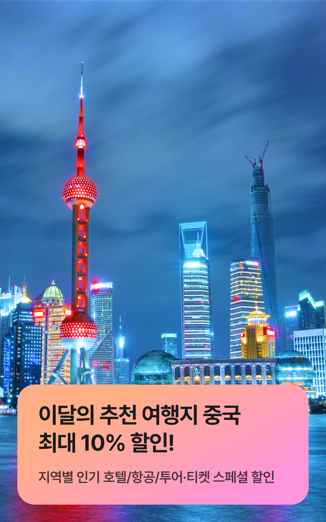 이달의 국가 중국 숙소 할인쿠폰 (중국 숙소 전용)