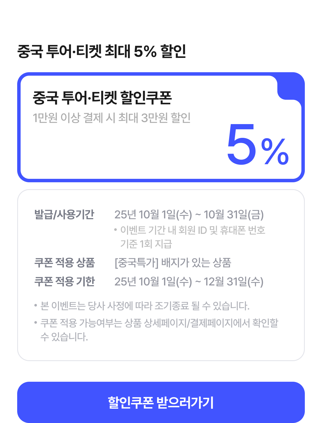 [이달의 국가 중국 할인쿠폰 유의사항]