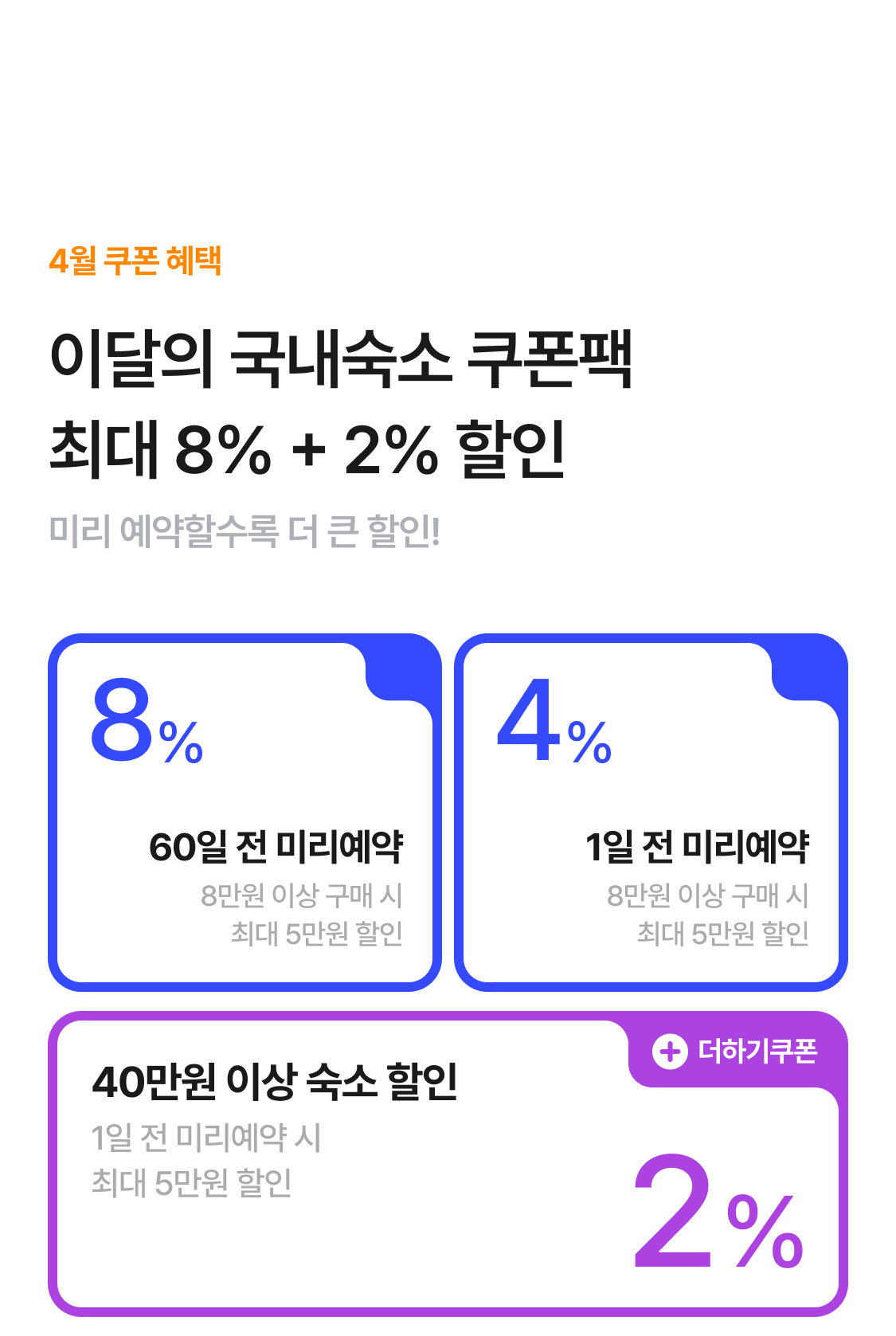 - 보유하신 쿠폰은 'MY > 쿠폰함 > 국내숙소'에서 확인 가능합니다.