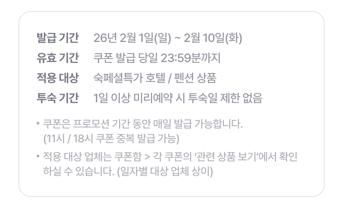- 쿠폰 발급 기간 : 2026.2.01(일) ~ 2026.2.10(화)