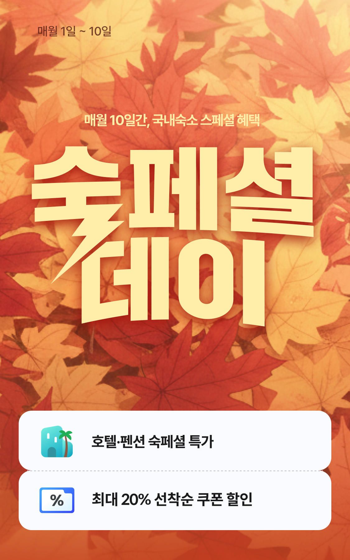 - 숙페셜데이 선착순 쿠폰은 발급 기간 내 1일 1회까지 발급 가능합니다.
