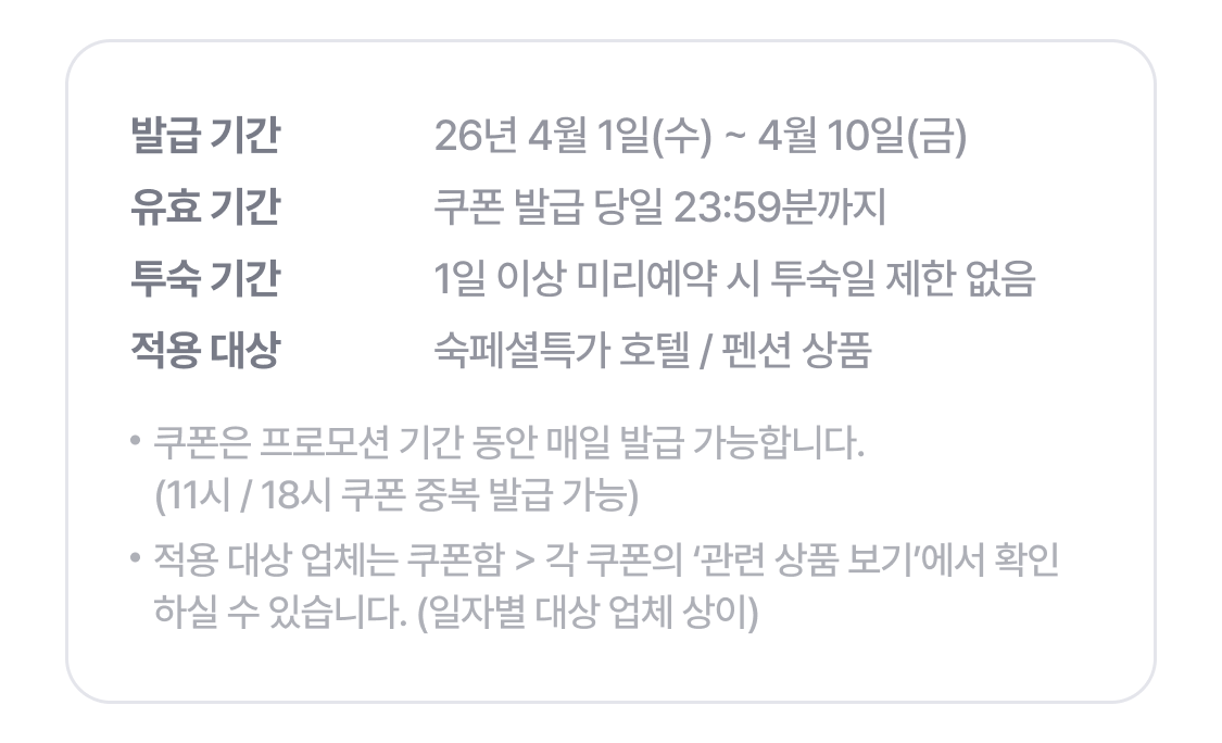 - 쿠폰 발급 기간 : 2026.4.01(수) ~ 2026.4.10(금)