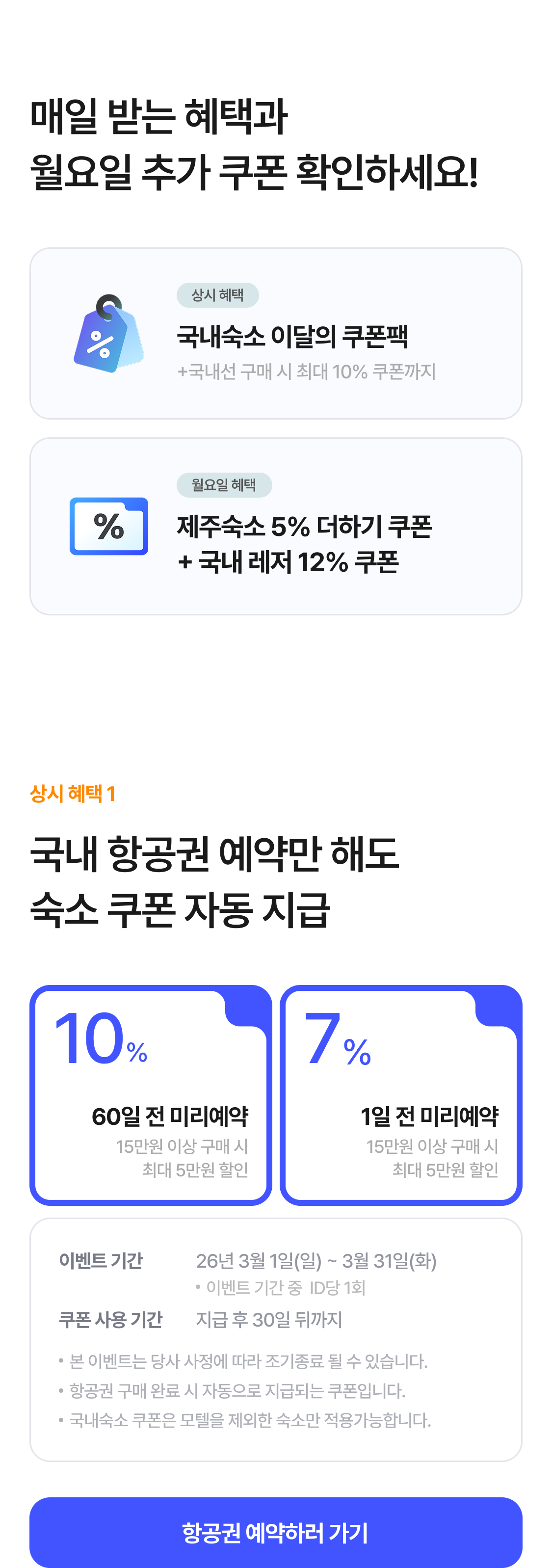(숙소 쿠폰 일 1만장 / 레저 쿠폰 일 2천장 선착순 발급)