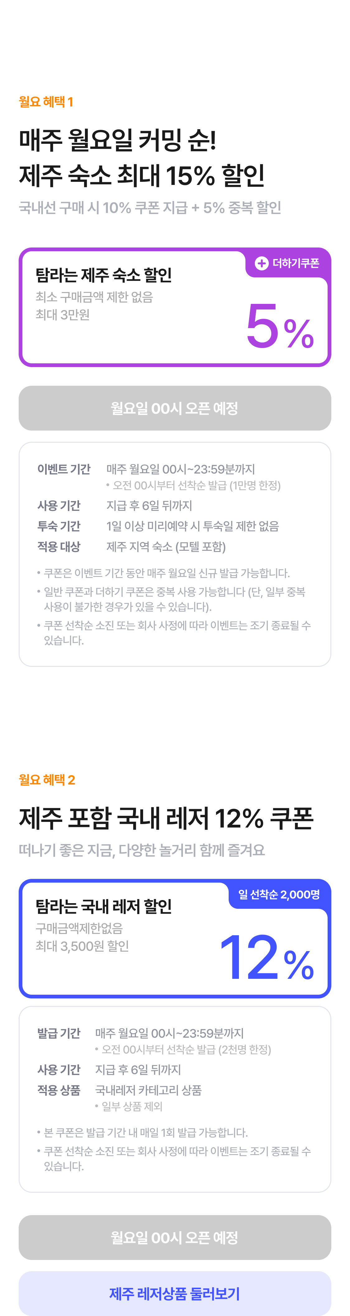 • 탐라는 제주 숙소 5% 더하기 할인: 제주 지역 국내숙소 숙박 / 연박 상품